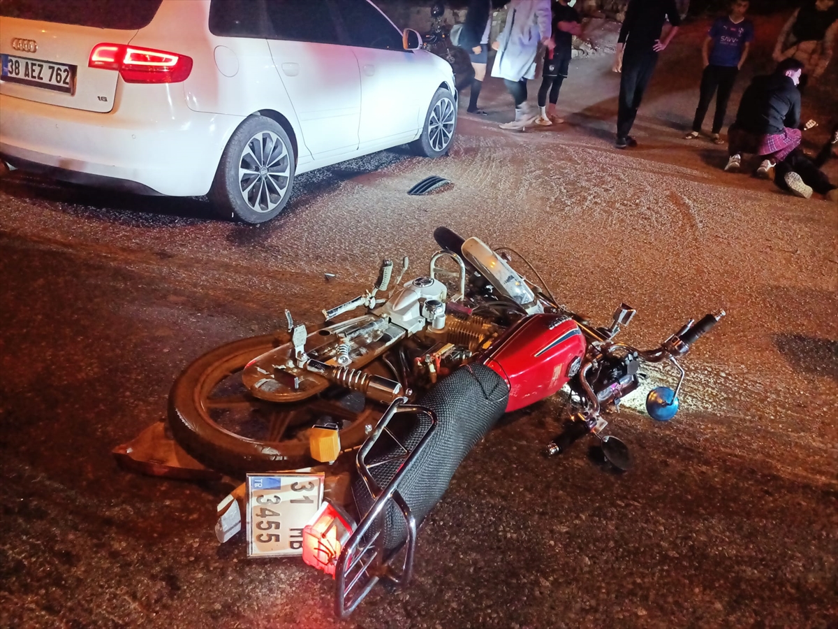 Sürücüleri henüz tespit edilemeyen 38 AEZ 762 plakalı otomobil ile 31 MB 3455 plakalı motosiklet, Belen-Antakya kara yolu Sarayburnu Kavşağı'nda çarpıştı. İhbar üzerine bölgeye polis ve sağlık ekibi sevk edildi.