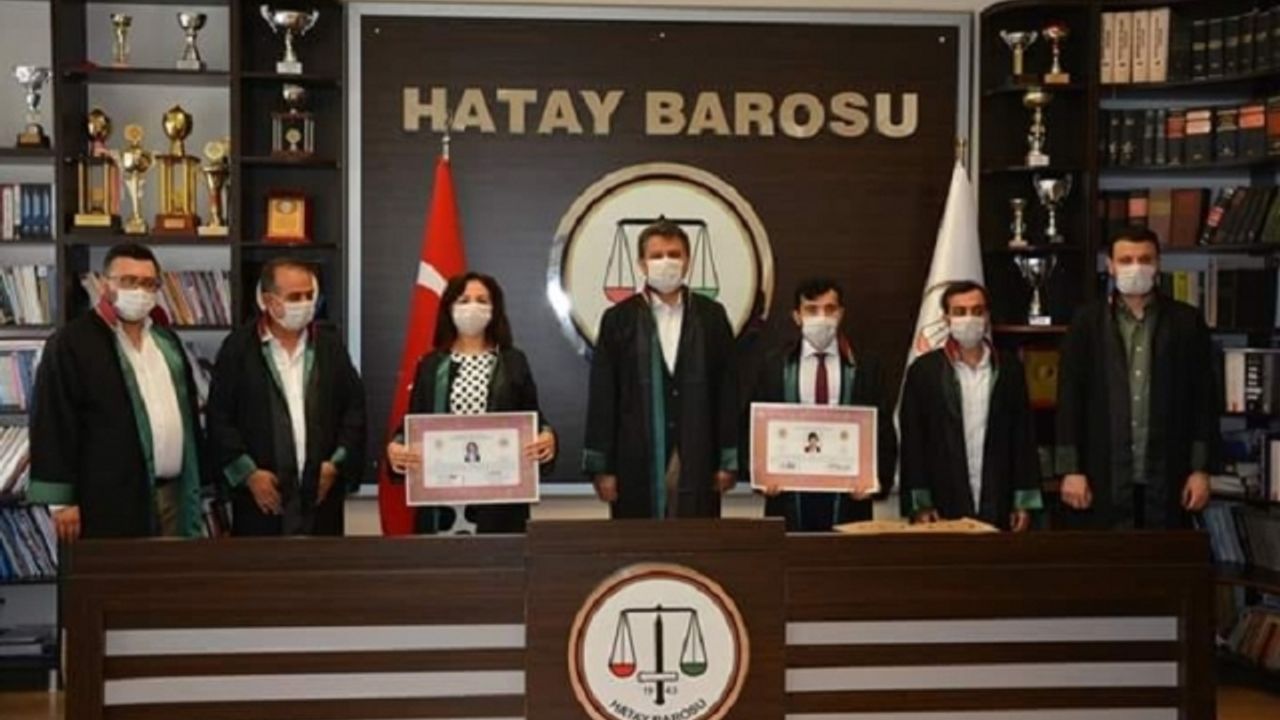 Staj dönemini başarı ile tamamlayan Fatma Serap Balakan ve Oğuzhan Dikmen Antakya Adliyesinde düzenlenen yemin töreni ile ruhsatlarını Hatay Barosu Başkanı Av. Ekrem Dönmez'in elinden aldı.