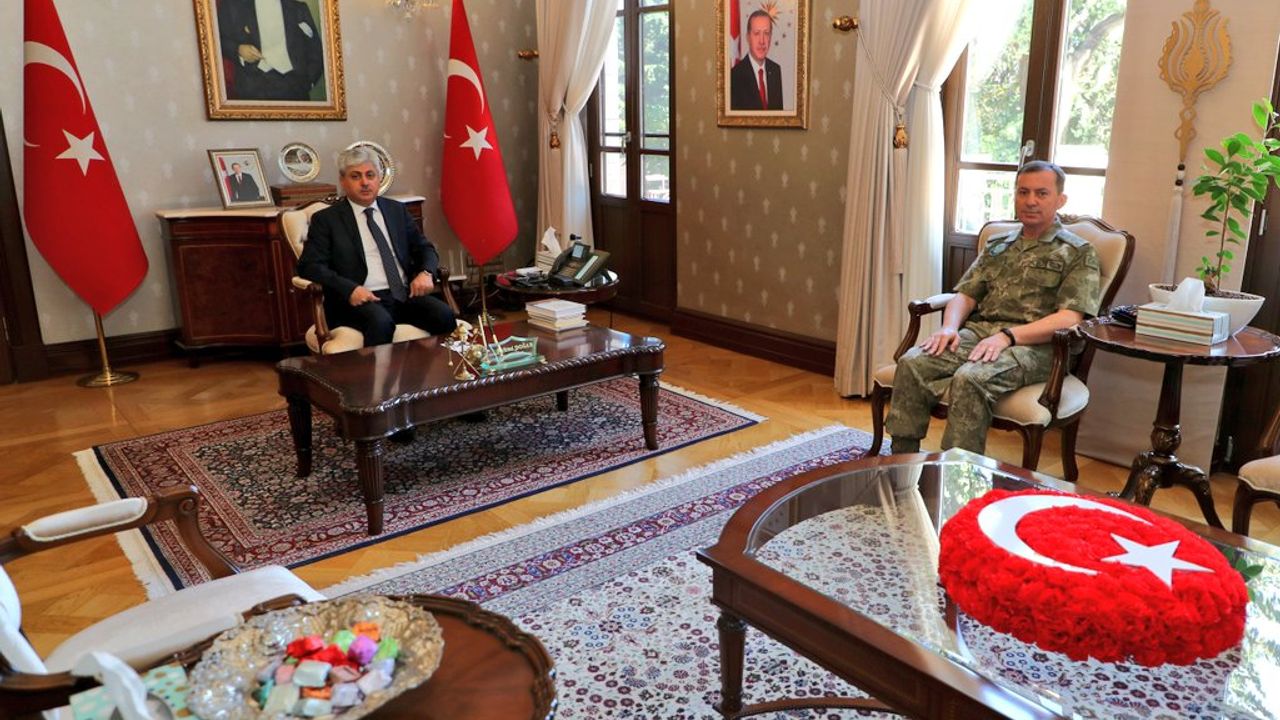 Hatay Valisi Rahmi Doğan, Hatay İlimize 2. Hudut Alay Komutanı olarak atanan Piyade Albay Tarık Çetin’i makamında kabul etti.
