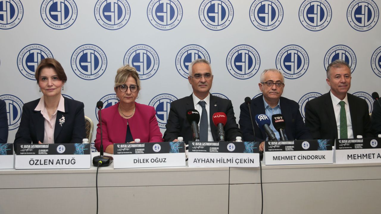 Kemer ilçesindeki bir otelde 42. Ulusal Gastroenteroloji Haftası (UGH) kapsamında 'Sağlık İçin Harekete Geç' temasıyla düzenlenen kongrede, TGD Başkanı Prof. Dr. Ayhan Hilmi Çekin'in moderatörlüğünde basın toplantısı yapıldı.