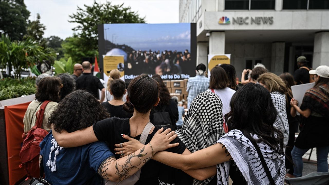ABD medyasında İsrail'in Gazze'ye saldırılarına ilişkin haberlerin taraflı olmasını protesto eden göstericiler, "Soykırıma medyanın suç ortaklığını durdurun." ve "Medya yalan söylüyor, Gazze ölüyor." yazılı dövizler taşıdı.