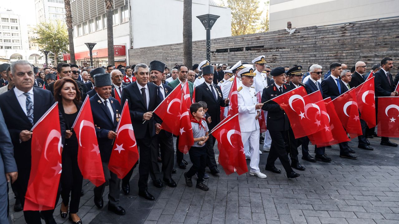 Atatürk Parkı'nda gerçekleştirilen törende, Vali Yavuz Selim Köşger, 6. Kolordu ve Garnizon Komutanı Tümgeneral Mehmet Yasin Kalın, Büyükşehir Belediye Başkan Vekili Güngör Geçer ve Türkiye Muharip Gaziler Derneği Adana Şube Başkanı Coşkun Adaber, Atatürk Anıtı'na çelenk sundu.