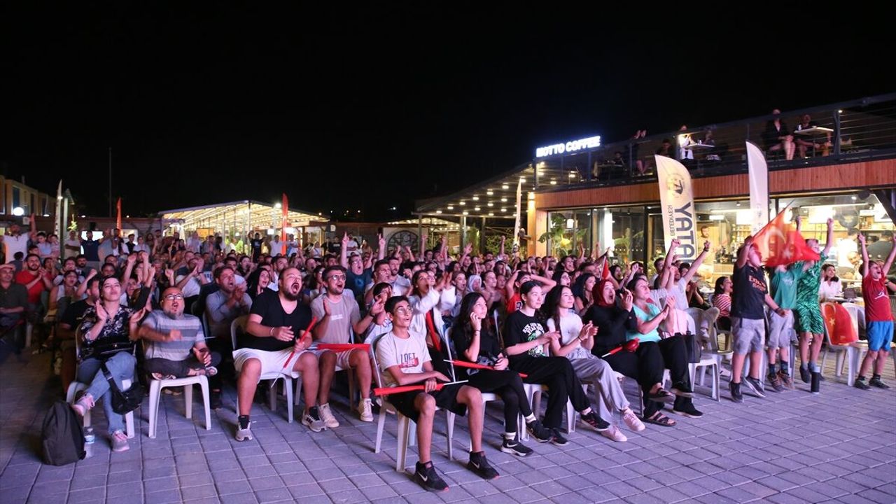 Hatay'da da vatandaşlar, A Milli Basketbol Takımı'nın EuroBasket 2025 finalinde Almanya ile karşılaştığı maç için Kültür ve Sanat Çarşısı'nda toplandı.