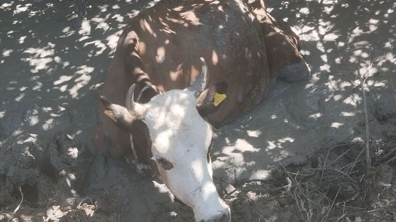 ADANA (AA) - Adana'nın Ceyhan ilçesinde çamura saplanan inek, itfaiye ekiplerince çıkarıldı.