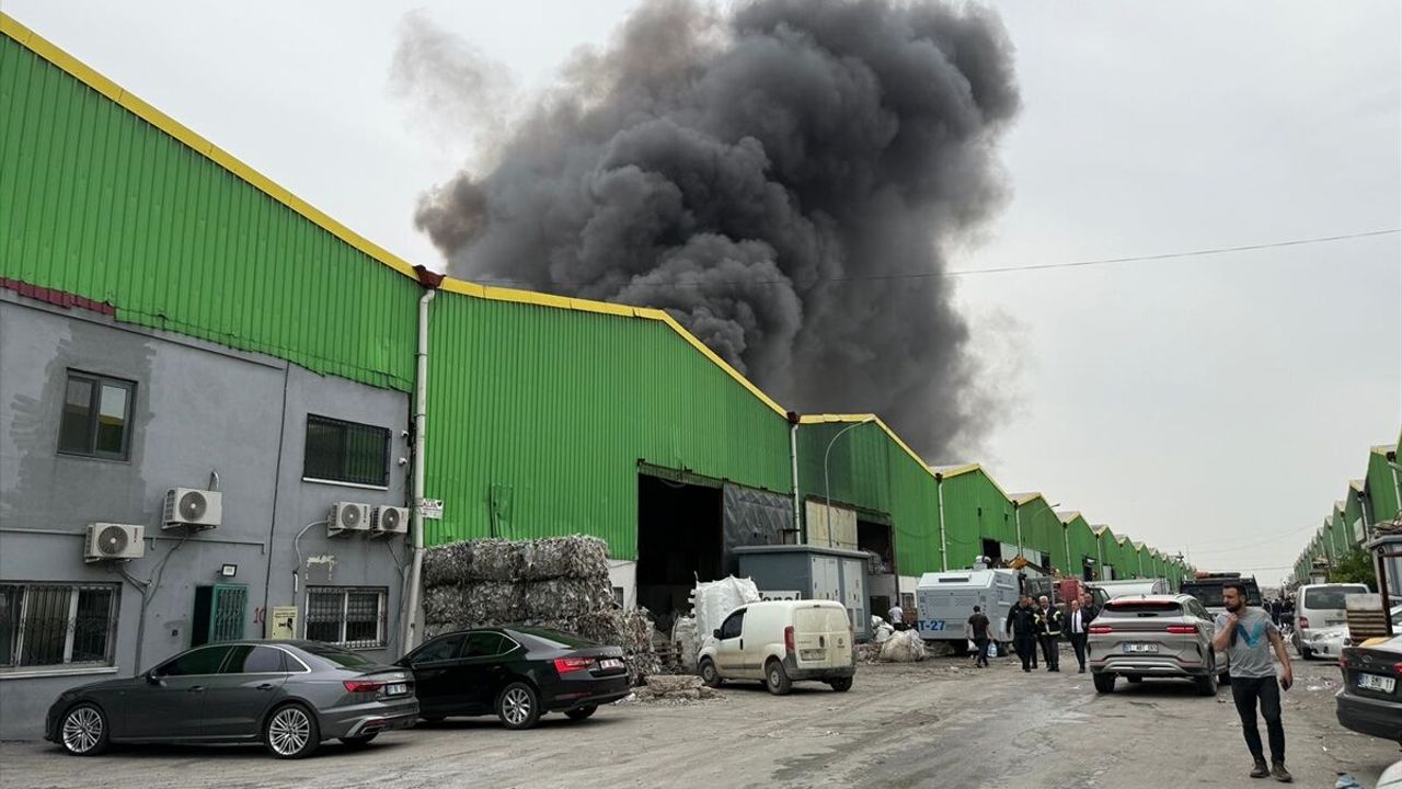 Sarıhamzalı Mahallesi'ndeki geri dönüşüm tesisinde henüz belirlenemeyen nedenle yangın çıktı.