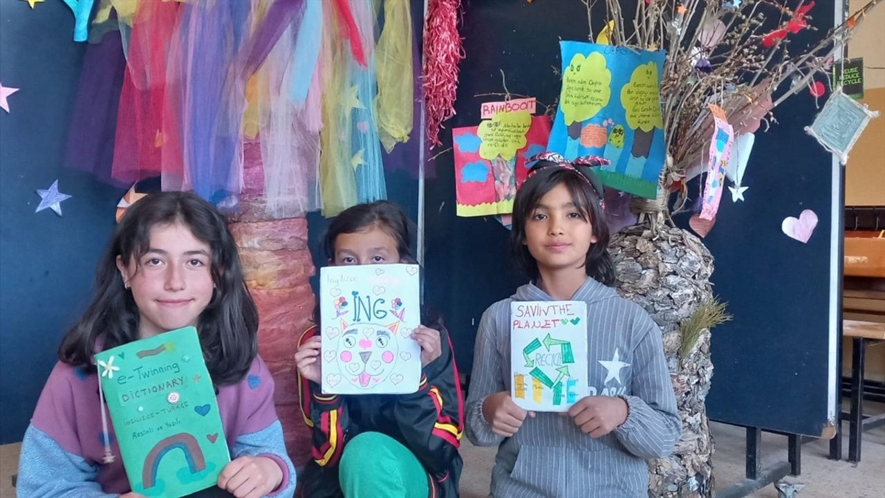 Çeralan İlkokulu ve Ortaokulu öncülüğünde "eTwinning Projesi" kapsamında düzenlenen etkinlikte öğrenciler, karton ve plastik atıklardan çeşitli ürünler hazırladı.