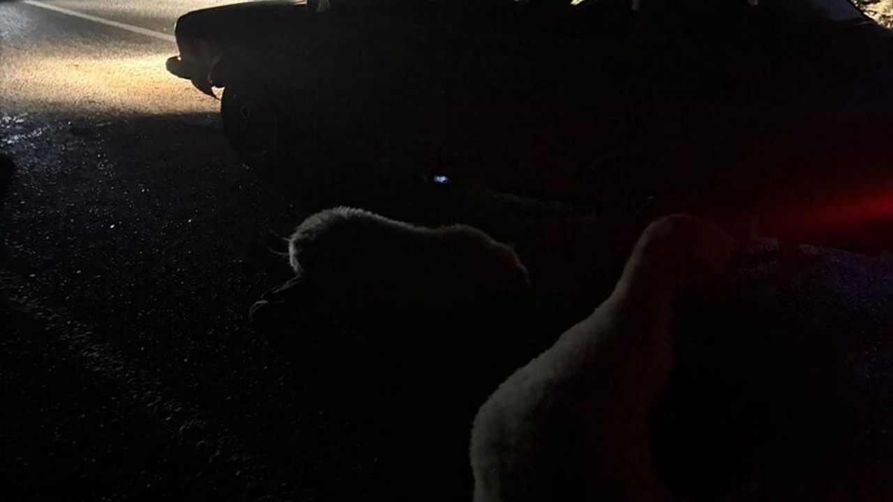 Akarca Mahallesi'nde yol kenarında otlayan koyun sürüsüne sürücüsünün kimliği ve plakası henüz öğrenilemeyen otomobil çarptı.