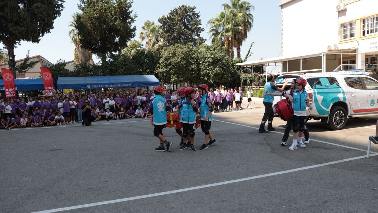 Çocuklar, hasta taşıma ve sedye kullanımı gibi temel ilk yardım pratiklerini deneyimledi.