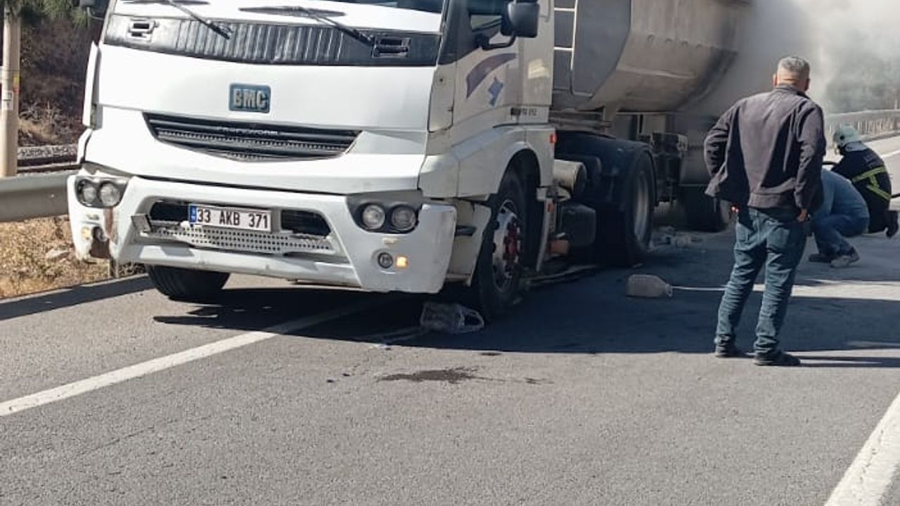 Sürücüsünün ismi öğrenilemeyen 33 AKB 371 plakalı tırın dorsesi, Adana-Pozantı Otoyolu'nda henüz belirlenemeyen nedenle alev aldı.