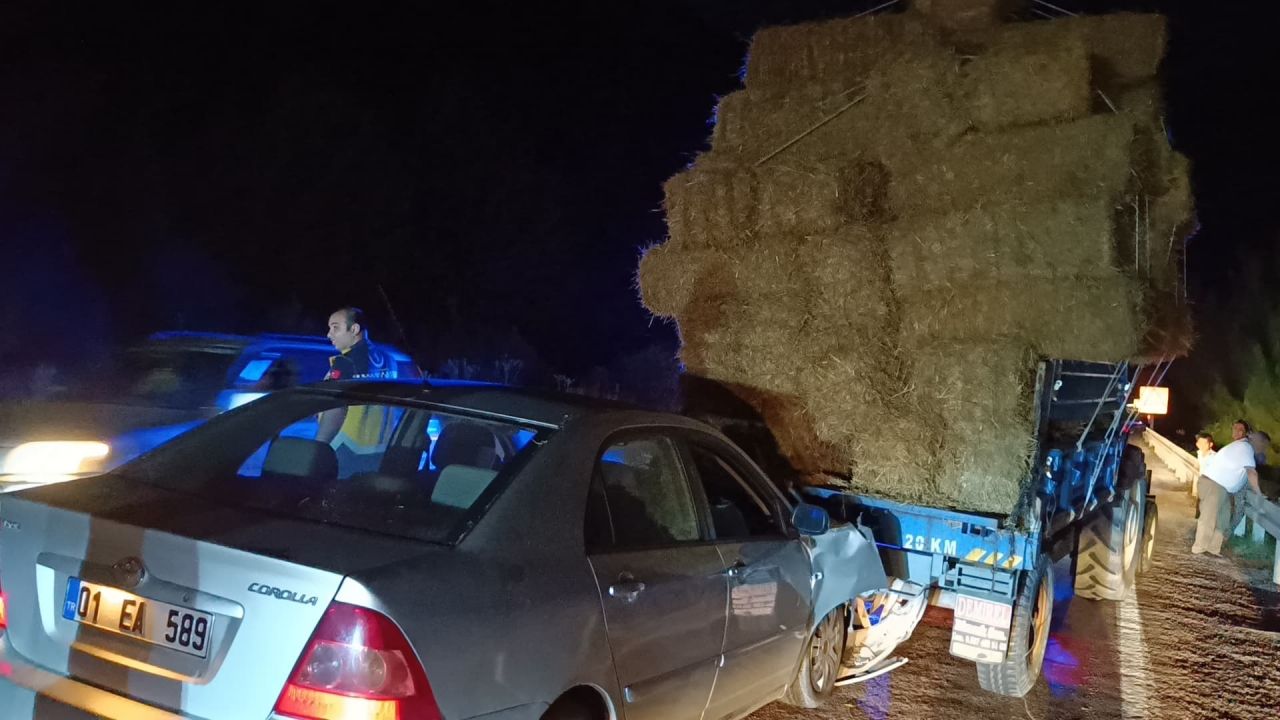 ADANA (AA) - Adana'nın Kozan ilçesinde saman yüklü traktöre çarpan otomobilin sürücüsü yaralandı.