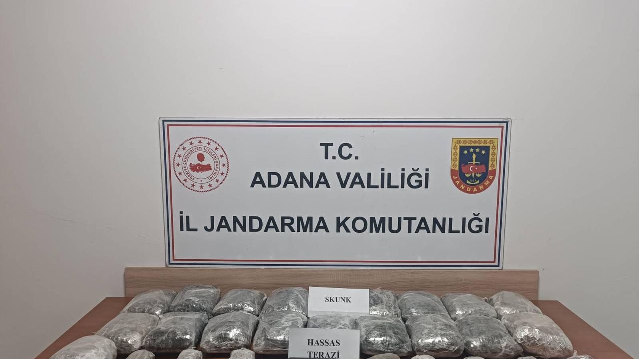 Merkez Sarıçam ilçesindeki eve düzenlenen operasyonda 11 kilogram skunk ile hassas terazi ele geçirildi, M.E.Ü, gözaltına alındı.
