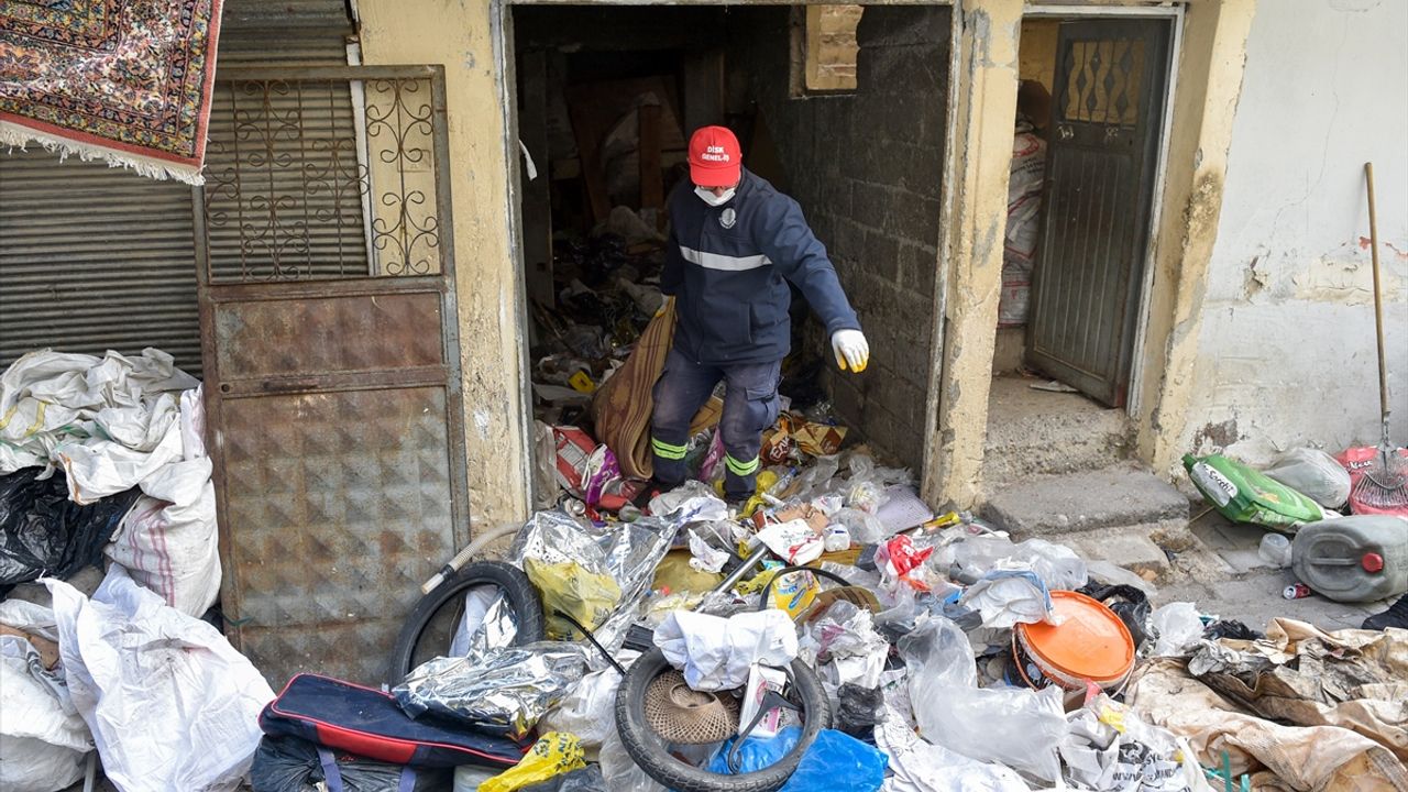 ADANA (AA) - Adana'da belediye ekiplerince temizlik çalışması yapılan evden iki kamyon çöp çıkarıldı.
