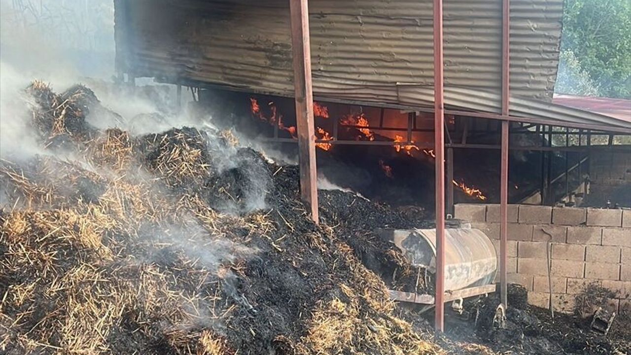 Ahırdaki saman balyalarının da tutuşmasıyla yangın kısa sürede büyüdü.