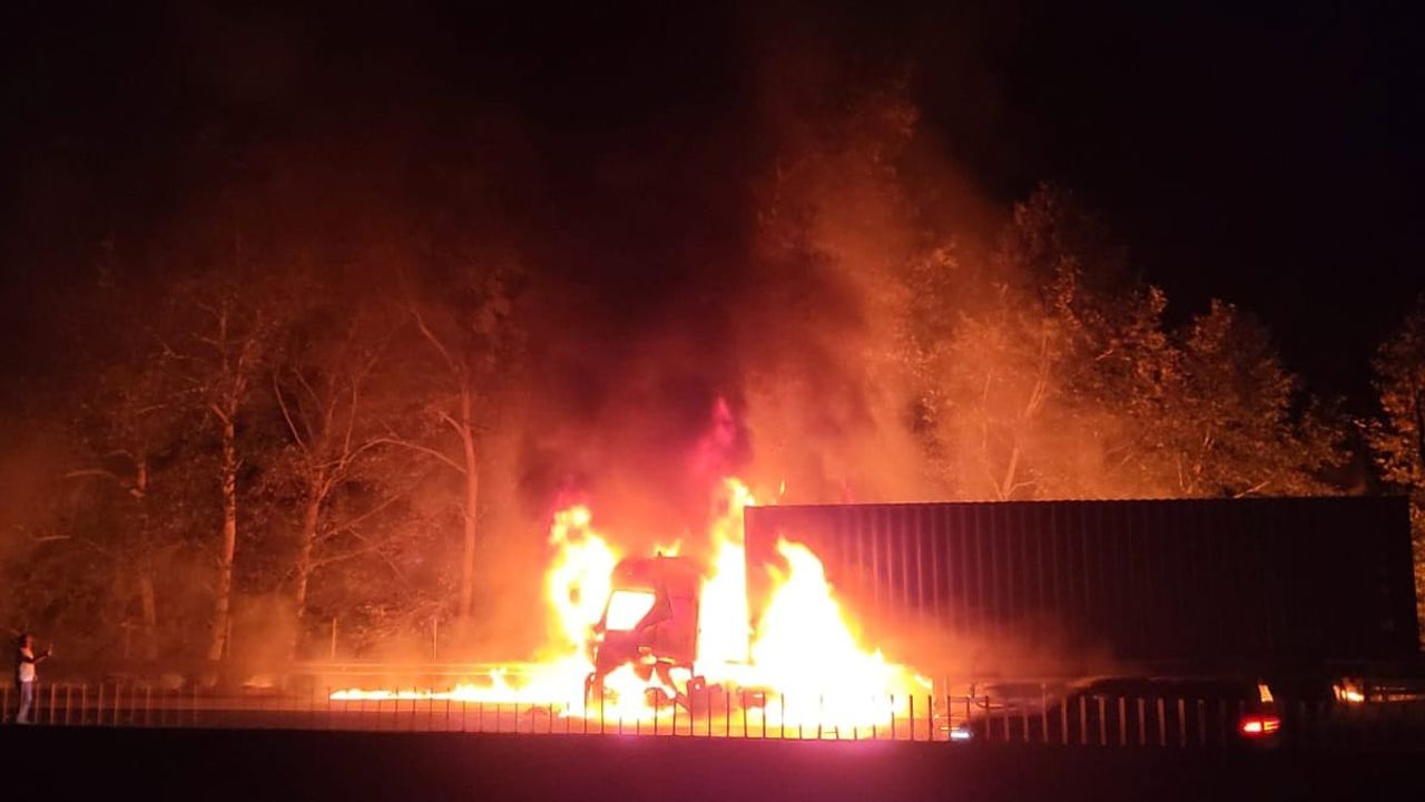Sürücüsü ve plakası henüz öğrenilemeyen tır, Tarsus-Pozantı Otoyolu'nun Güney Gişeleri mevkisinde alev aldı.