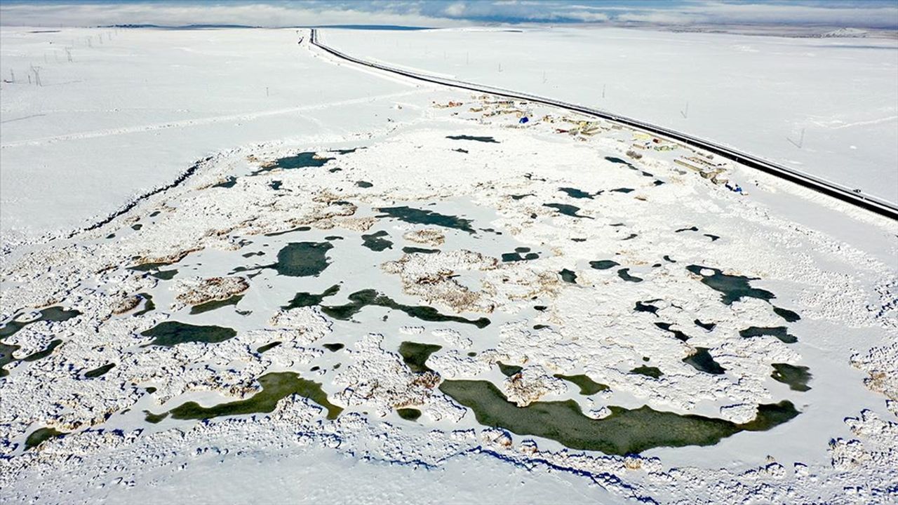 Endemik bitki türlerinin bulunduğu ve 2016'dan bu yana 'ulusal öneme haiz sulak alan' olarak koruma altında bulunan gölün çevresi de beyaza büründü.