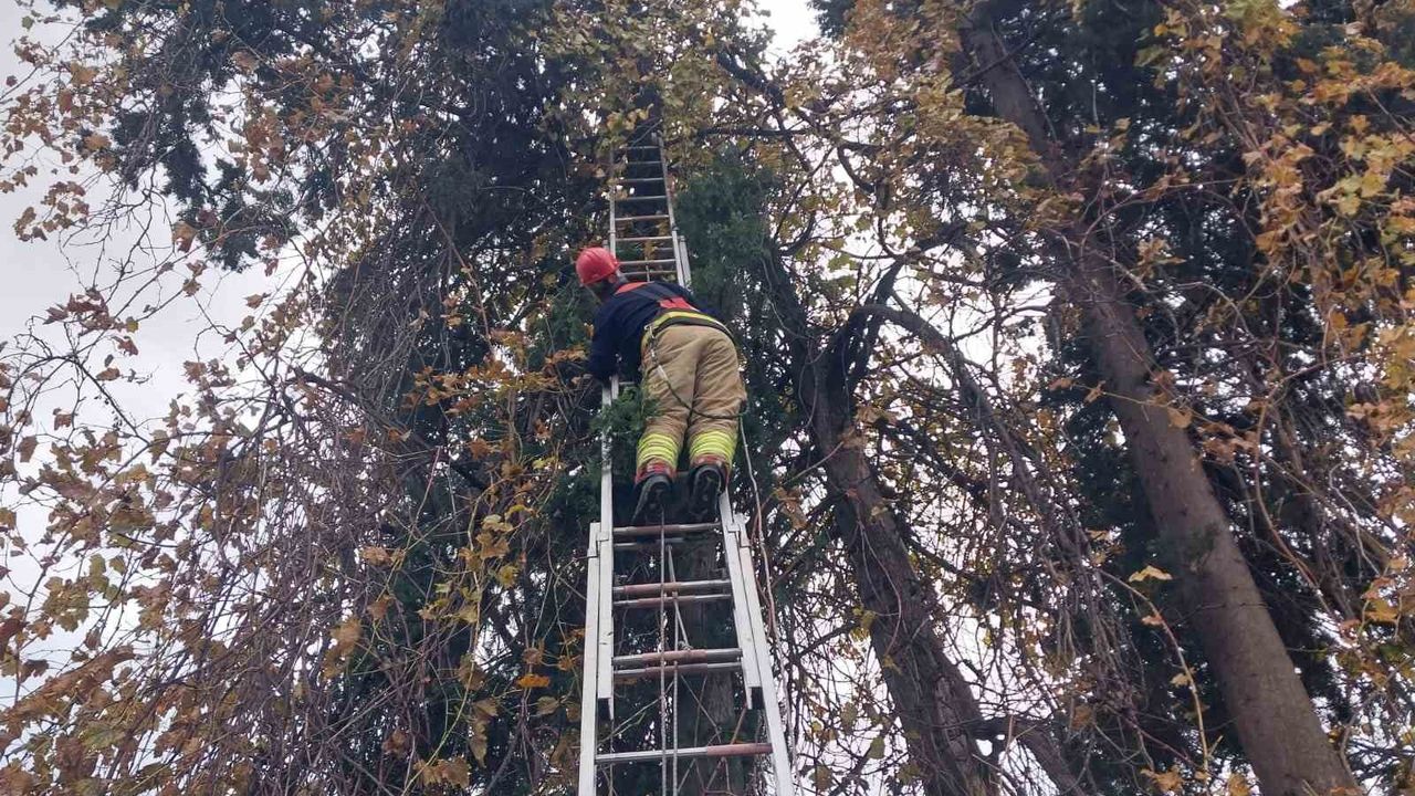 Hatay'da ağacın dallarına takılarak mahsur kalan şahin, itfaiye ekipleri tarafından kurtarılarak DKMP ekiplerine teslim edildi.