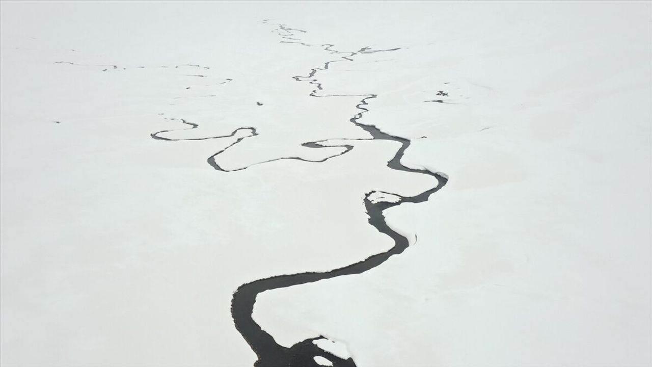 Kilometrelerce uzunluktaki menderesler ve çevresindeki karlı dağlar, dronla görüntülendi.