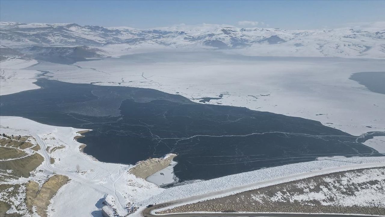 Kentin içme suyunu karşılayan, yaz aylarında da tarım alanlarını besleyen barajın buzla kaplı yüzeyinde yer yer buz çatlakları oluştu.