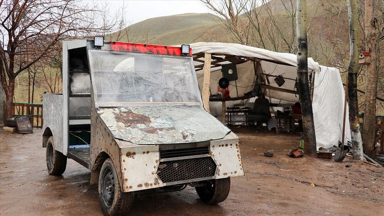 Küçük yaşlardan beri araçlara merakı olan Bayram, köyde günlük işlerinde kullanmak için hayalindeki aracı gerçeğe dönüştürmek amacıyla atık malzemeleri bir araya getirerek çalışmaya başladı.