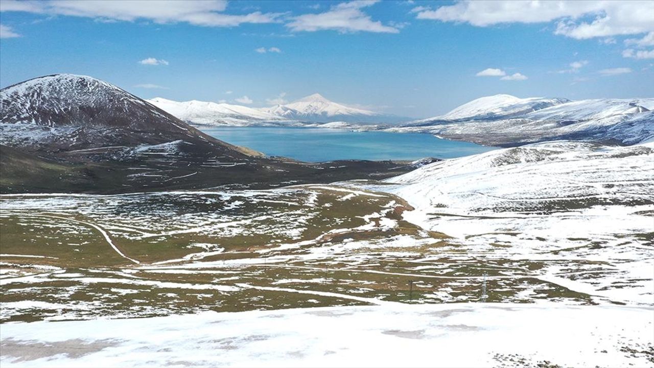 Taşlıçay ilçesindeki Balık Gölü çevresinde bulunan dağlarda kar, nisan ayının sonuna doğru erimeye başladı. Bir yanı bahar, bir yanı kış olan dağlar, manzarasıyla etkileyici görüntüler oluşturuyor.