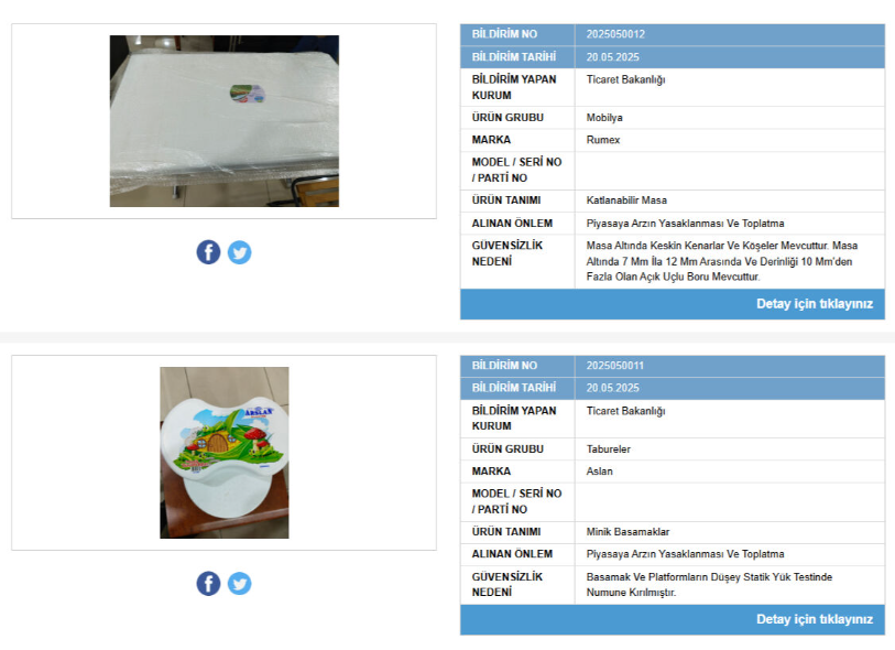 Bu ürünler de güvenlik testlerini geçemediği için yasaklandı. Bakanlık, denetimlerin süreceğini ve çocuk sağlığını tehdit eden hiçbir ürüne tolerans gösterilmeyeceğini belirtti.