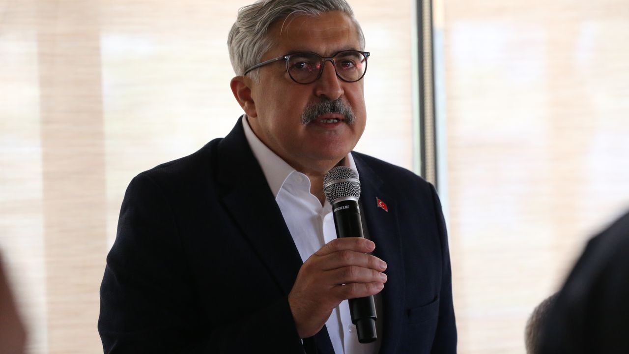 Yayman, Hatay'ın Altınözü ilçesinde bir kafede, belediye başkanları, parti teşkilatı, sivil toplum kuruluşu temsilcileri ve muhtarlarla bir araya geldi.