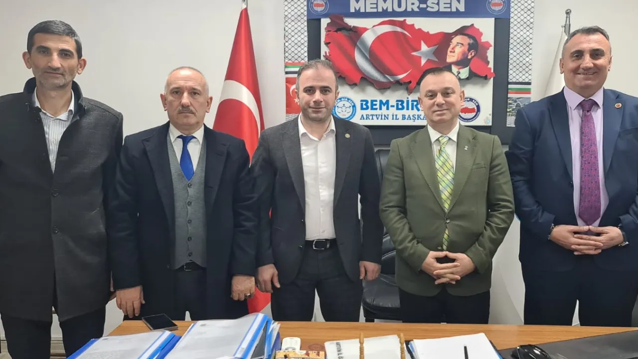 AK Parti Kemalpaşa İlçe Başkanı Yener Balkaya ile Hopa AK Parti İlçe Başkanı Ahmet Karabulut, Belediye ve Özel İdare Çalışanları Birliği Sendikası (BEM-BİR-SEN) Artvin İl Başkanı Erdal Genç’i ziyaret etti.Bayram SARAYOĞLU / ARTVİN (İGFA) - AK Parti, Artvin’de 8. Olağan İlçe Kongreleri sürecinin ardından Kemalpaşa İlçe Başkanlığı'na getirilen Yener Balkaya ile Hopa İlçe Başkanlığı görevine getirilen Ahmet Karabulut, çeşitli ziyaretlerde bulunuyor.