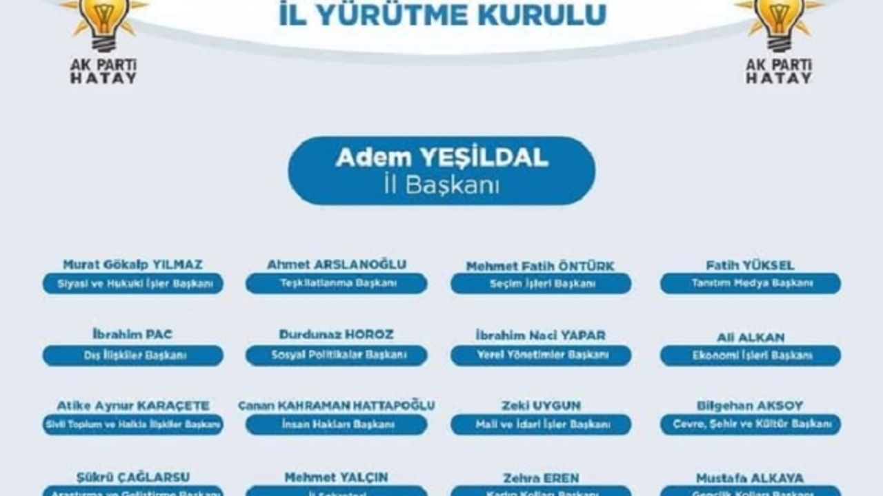 AK Parti Hatay İl Yönetim Kurulu görev bölümü yaptı. Yürütme Kuruluna seçilenler şöyle: