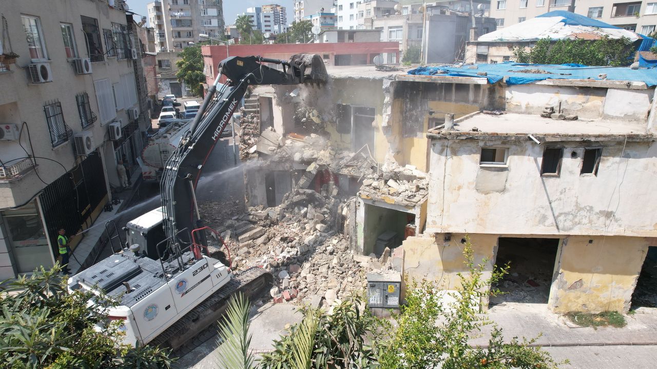 MERSİN (AA) - Mersin'in Akdeniz ilçesinde 2 katlı metruk binanın kontrollü yıkımı yapıldı.