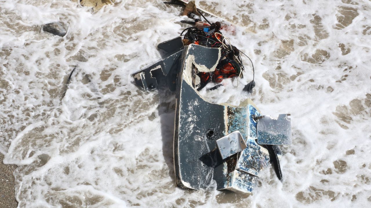 Şiddetli rüzgar ve dalgaların zarar verdiği balıkçı teknesi, bir süre sonra Soğukkapı Plajı'na vurdu.