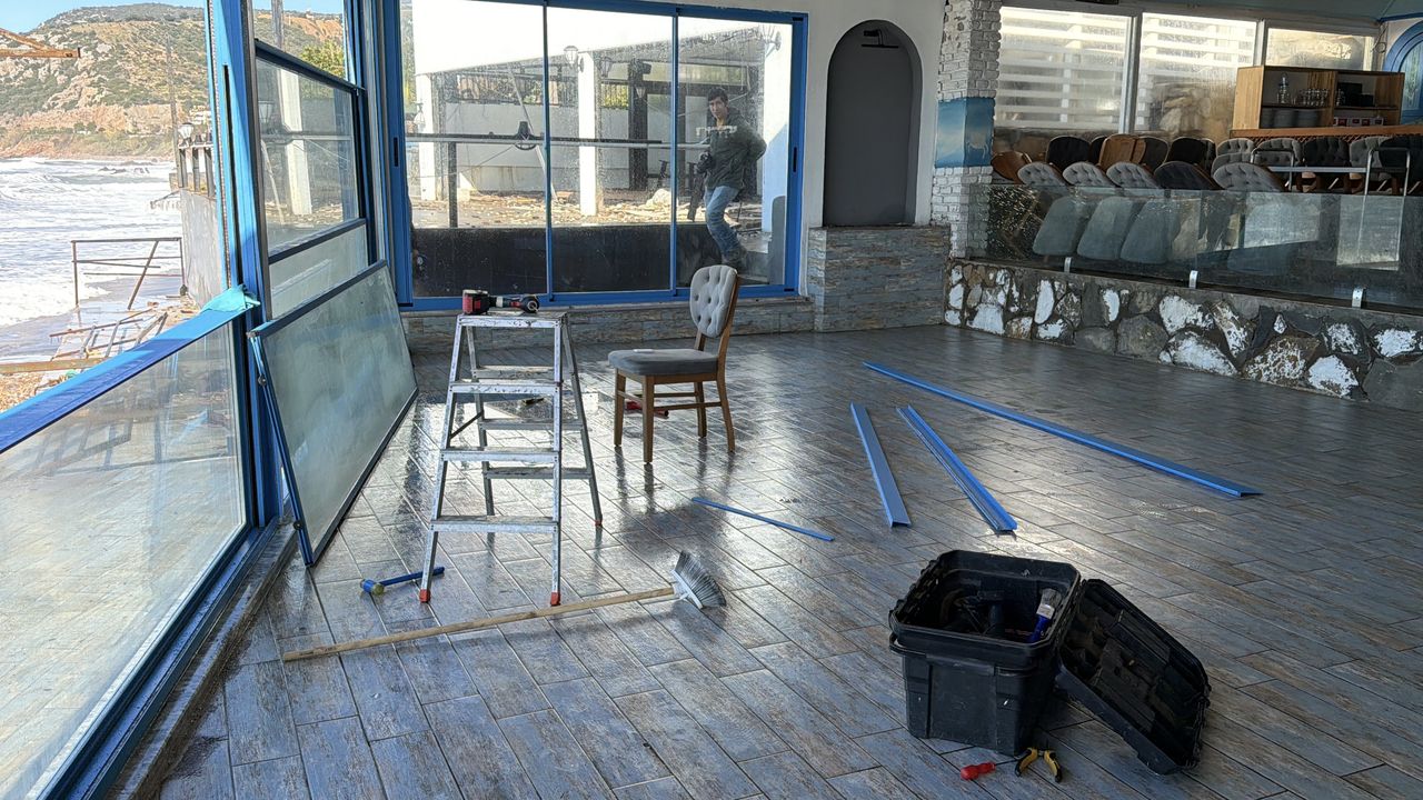 Sahil bölgesindeki bazı plaj büfeleri ile Dinek Mahallesi'ndeki bir balık restoranı, dalgalar nedeniyle zarar gördü.