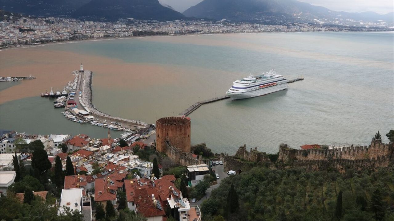 Keykubat ve Soğuk Kapı plajları ile Alanya Balıkçı Barınağı'nda deniz farklı renklere büründü.