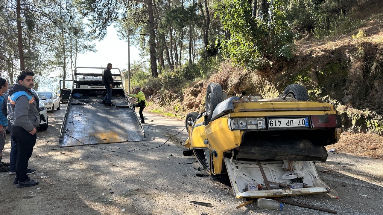 Hüseyin K. (53) idaresindeki 07 UP 419 plakalı otomobil, Büyükhasbahçe Mahallesi'nde yol kenarındaki kayaya çarparak takla attı.