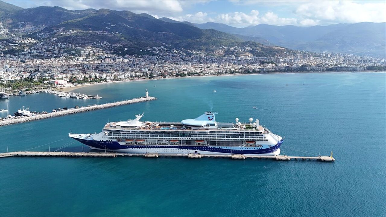 Marmaris'ten demir aldıktan sonra rotasını Antalya'ya çeviren 264 metre uzunluğundaki yolcu gemisi, sabah saatlerinde Alanya Limanı'na yanaştırıldı.