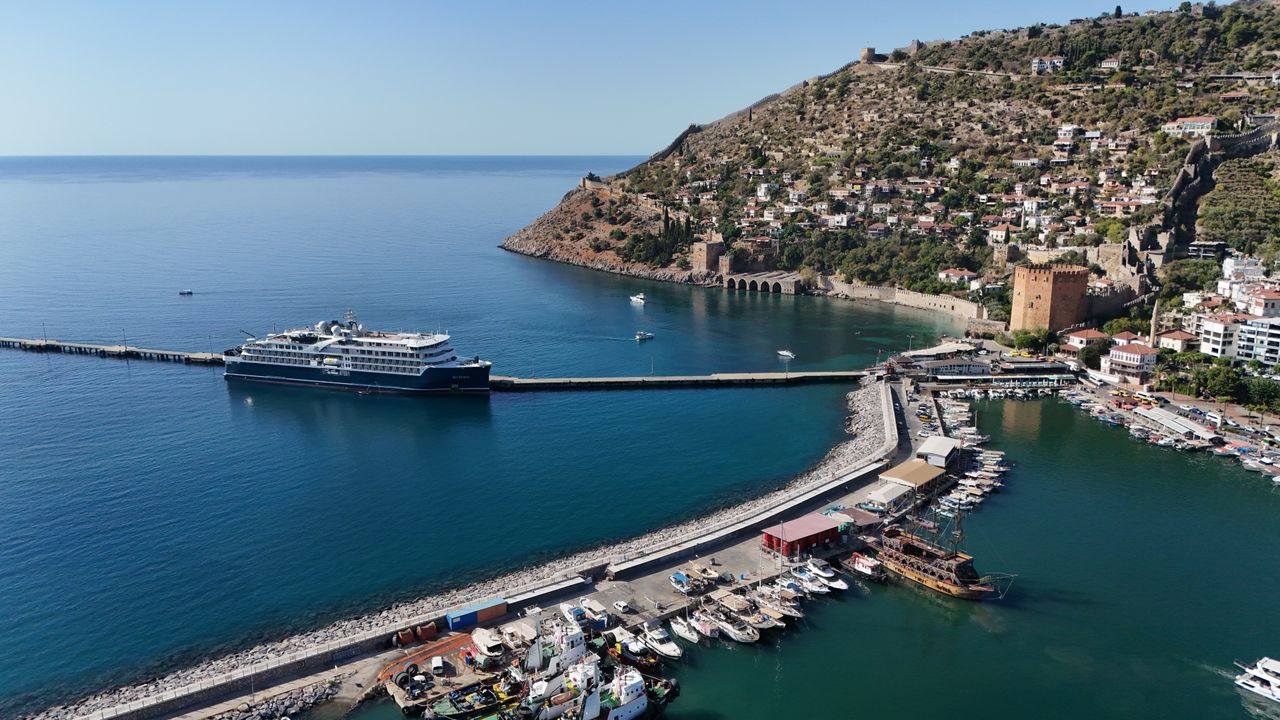Fethiye'den demir altıktan sonra rotasını Antalya'ya çeviren 125 metre uzunluğundaki yolcu gemisi, sabah saatlerinde Alanya Limanı'na yanaştırıldı.