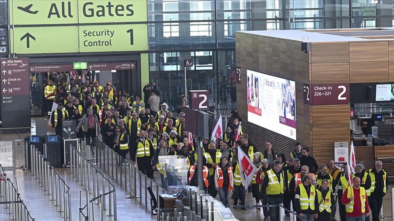 BERLİN (AA) - Birleşik Hizmet Sektörü Sendikasına (Ver.di) bağlı kamu çalışanları ile yer hizmetleri personeli, işverenlerle ücretlerinin artırılmasına yönelik görüşmelerde anlaşmaya varılamaması nedeniyle ülkenin en işlek havalimanları Frankfurt ve Münih'in yanı sıra Köln/Bonn, Düsseldorf, Stuttgart, Dortmund, Hannover, Bremen, Hamburg, Berlin ve Leipzig-Halle havalimanlarında tüm gün iş bırakma eylemi gerçekleştiriyor.
