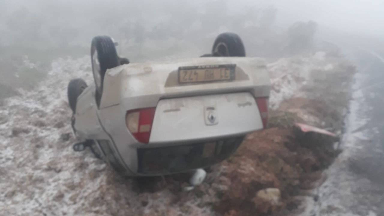 HATAY (AA) - Hatay'ın Altınözü ilçesinde kar yağışının etkisiyle kayganlaşan yolda takla atan otomobildeki 2 kişi yaralandı.
