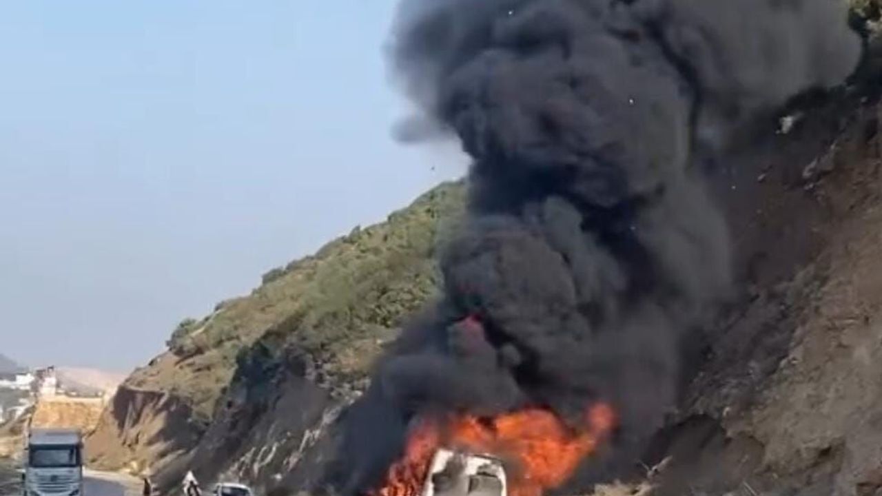 Altınözü-Antakya kara yolu Küncülü Boğazı mevkisinde bir servis minibüsü henüz belirlenemeyen nedenle yanmaya başladı.