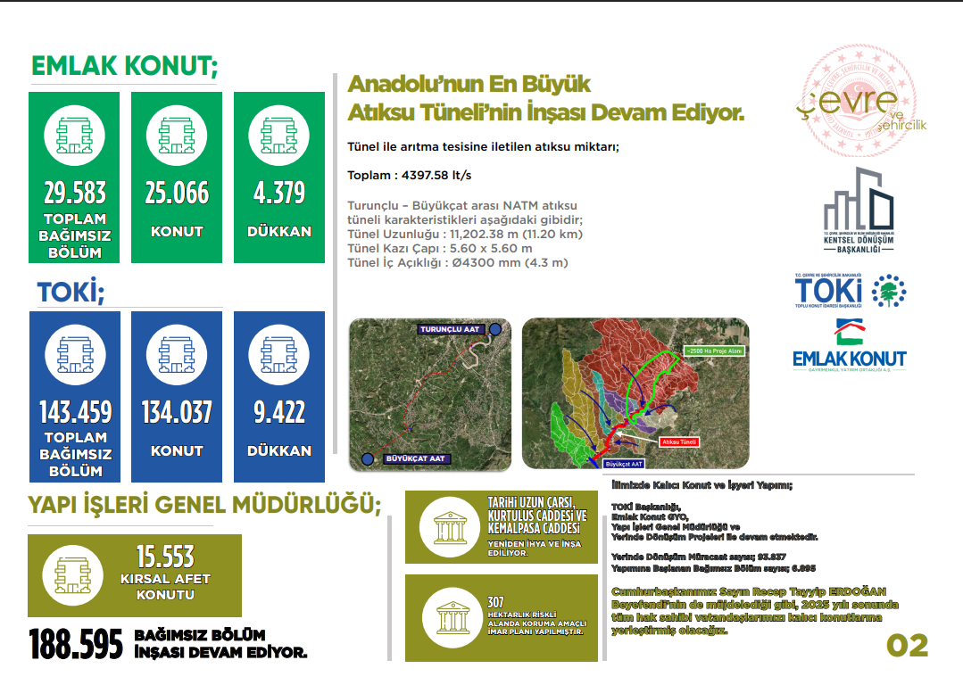 Hatay Valiliği tarafından paylaşılan verilere göre, deprem sonrası yeniden imar ve inşa çalışmaları hızla sürerken toplamda 188.595 bağımsız bölümün yapımı devam ediyor. TOKİ, Emlak Konut ve Yapı İşleri Genel Müdürlüğü’nün koordinasyonunda yürütülen projelerle kentsel dönüşüm, altyapı ve konut inşası bütüncül bir şekilde ele alınıyor.