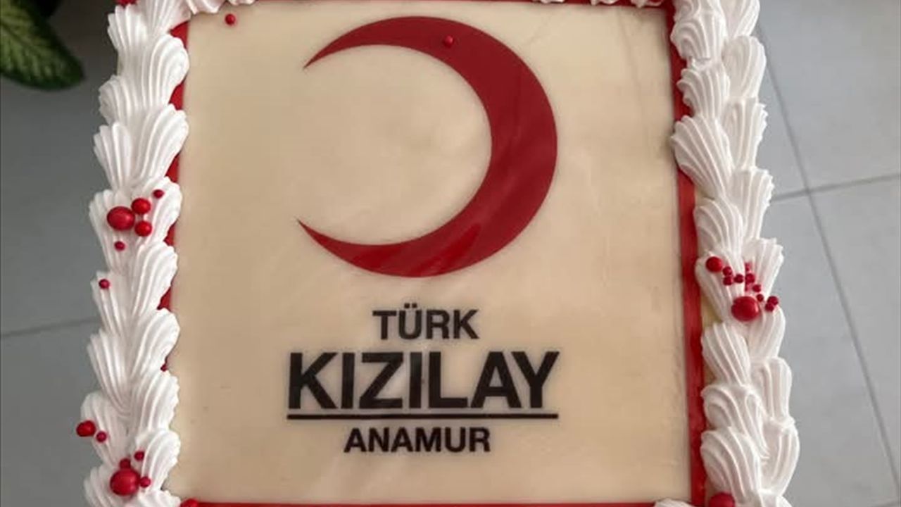 Türk Kızılay Anamur Şubesi'nde düzenlenen etkinlikte şube görevlilerinin katılımıyla pasta kesildi.