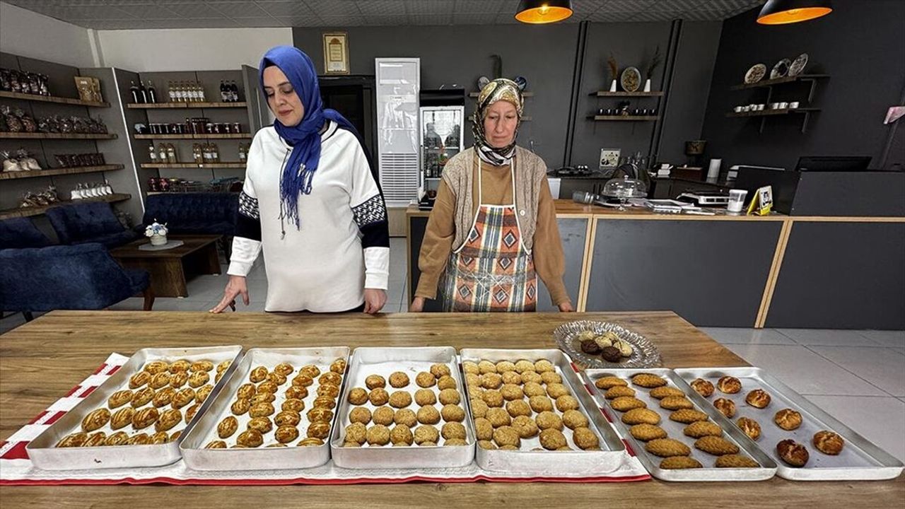 Bu kapsamda iftardan önce Hayme Ana Kadın Kooperatifi'nde bir araya gelen anneler, el hünerleriyle birbirinden leziz çörek ve kurabiyeler hazırlıyor.