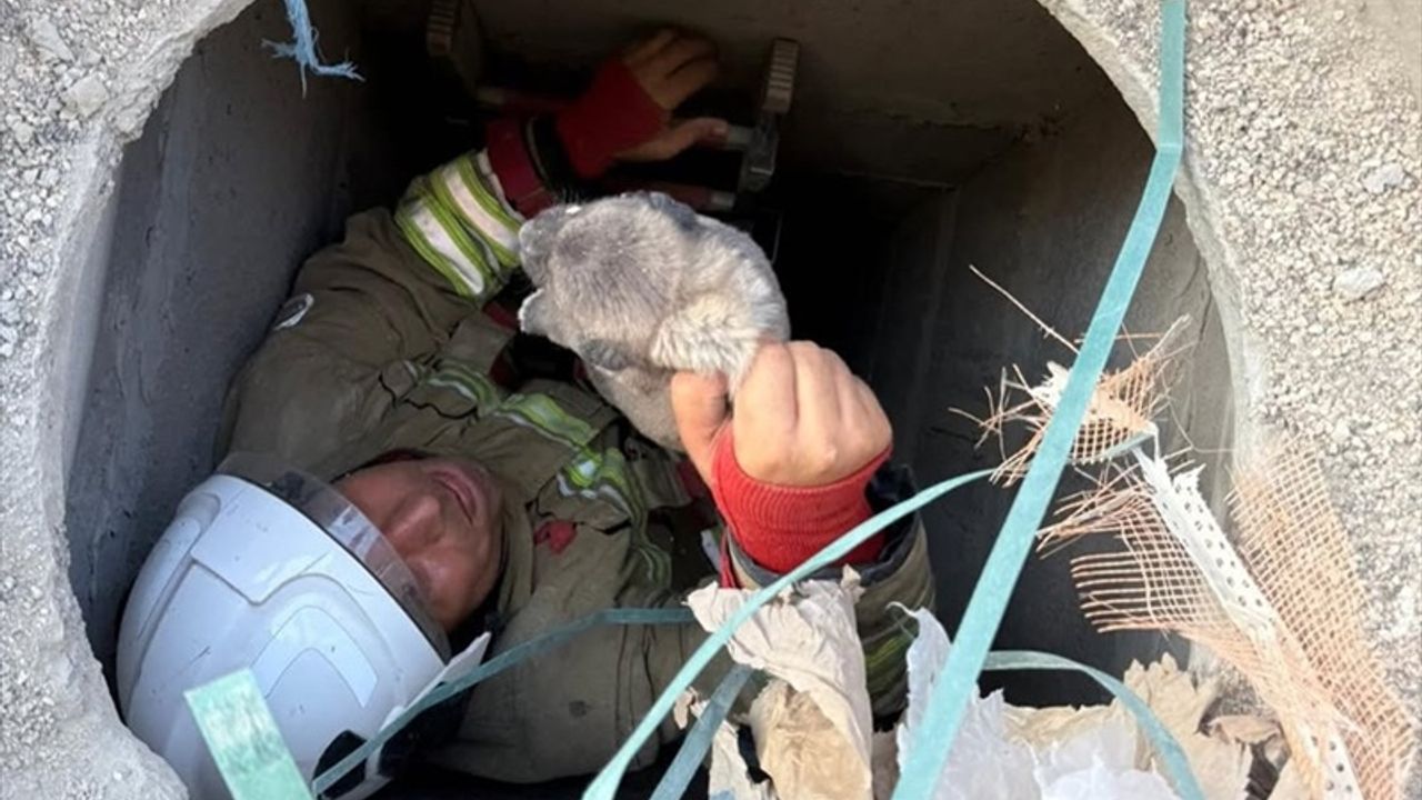 Altınçay Mahallesi'ndeki şantiyenin gider borusundan köpek sesi geldiğini duyanlar, durumu 112 Acil Çağrı Merkezine bildirdi.