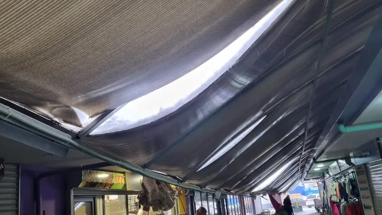 Hatay’da etkili olan yoğun kar yağışı, kentte günlük yaşamı olumsuz etkilemeye devam ediyor. Son yılların en şiddetli kış koşullarının yaşandığı bölgede, Paladium Çarşı’nın çatısı kar yüküne dayanamayarak çöktü.
