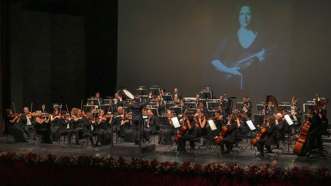 Antalya DOB orkestrasını şef İbrahim Yazıcı yönetti, başkemancı koltuğunda ise Zeynep Işık ile yıllarca aynı sahneyi paylaşan Halit Barış Öğüt yer aldı.