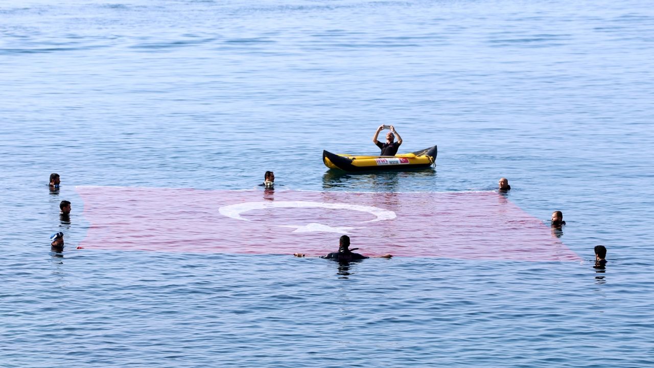 ANTALYA (AA) - İnsan Hak ve Hürriyetleri (İHH) İnsani Yardım Vakfı Antalya Arama Kurtarma ekibi, 15 Temmuz Demokrasi ve Milli Birlik Günü'nde denizde dev Türk bayrağı açtı.