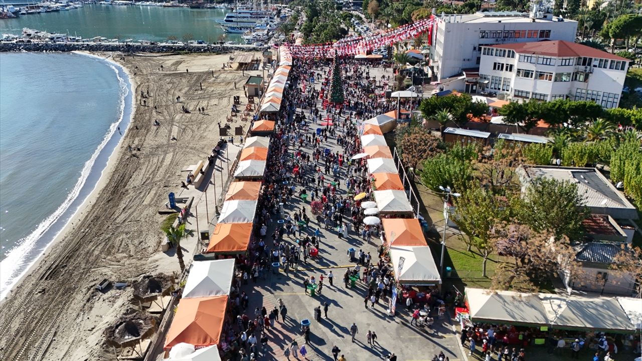 Müzik dinletisi ve gösterilerin yapıldığı pazarda, yerli ve yabancılar, ışıklandırılan 14 metrelik Noel ağacının önünde fotoğraf çektirdi.