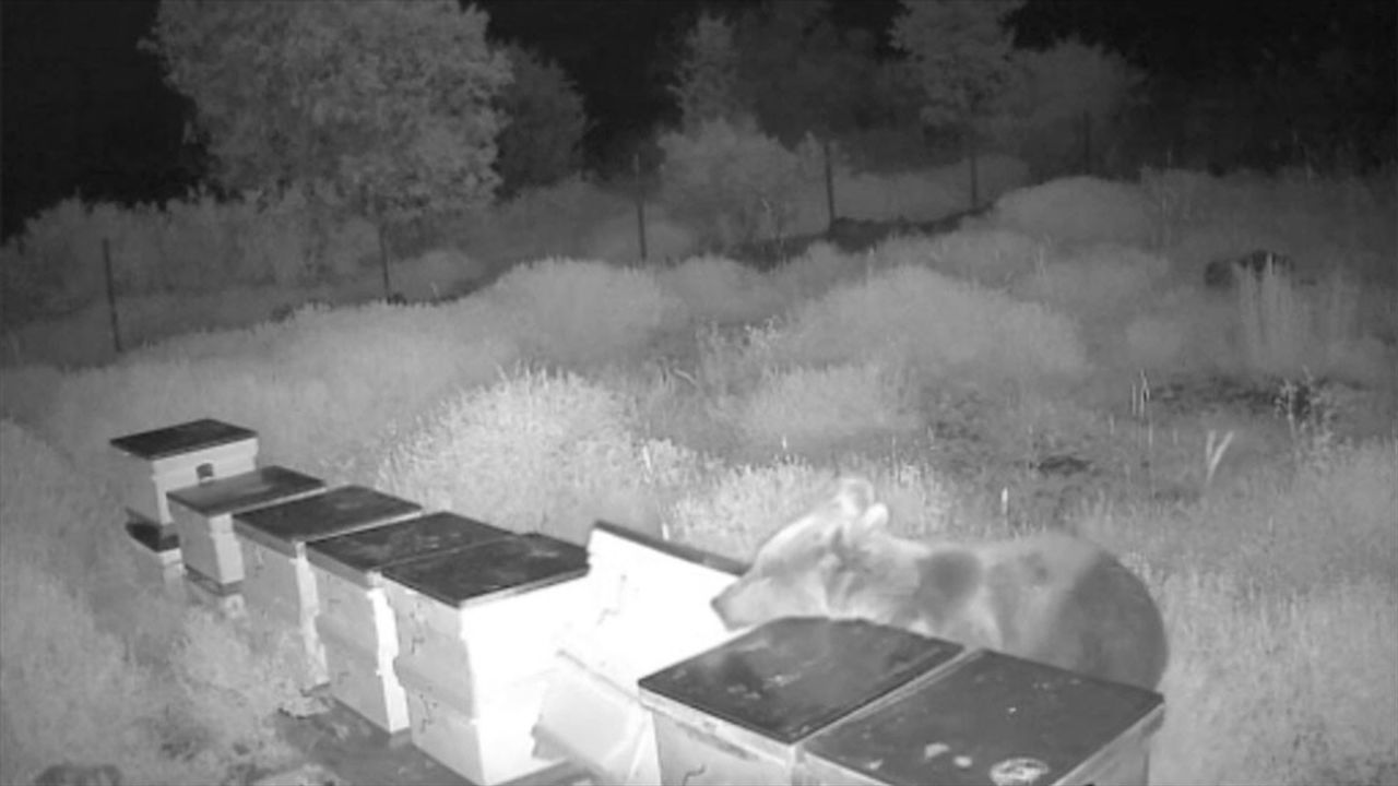 Görüntülerde, bir ayının kovanları parçaladığı ve balları yediği görüldü.