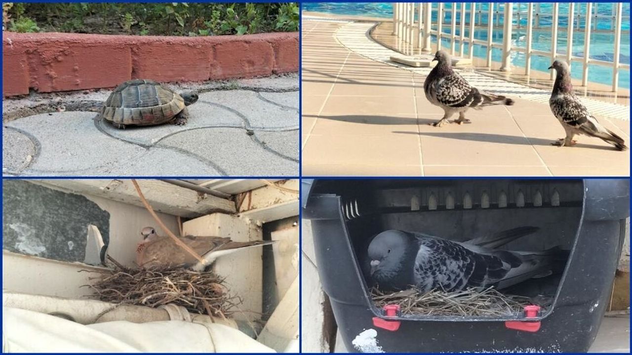 Çelikten, otel bahçesinde yalnızca güvercinlerin değil, kaplumbağa, kırlangıç, kumru, kedi ve köpek gibi çeşitli hayvanların da bulunduğunu söyledi.