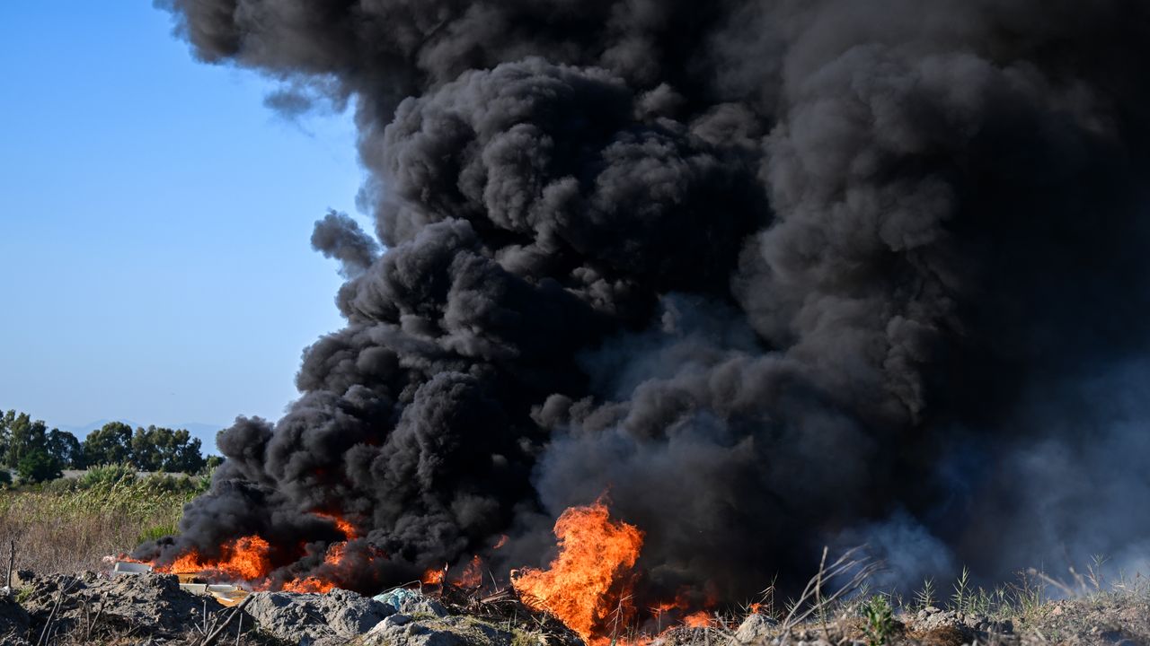 Yanan plastikler nedeniyle mahallenin üzerini siyah bulut kapladı.