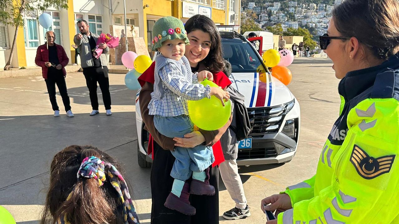 Etkinlikte Gökçe için hazırlanan balonlar gökyüzüne bırakıldı. Kaş İlçe Jandarma Komutanlığına bağlı trafik ekipleri de araçlarını balonlarla süsleyerek etkinliğe destek verdi.